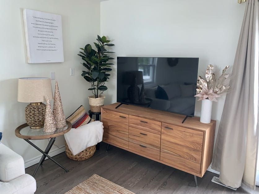 Step into your spacious, modern cottage after a sunny day on Lake Huron. Sink into the plush, sectional sofa and queue up your favorite favorite movie on the SmartTV. The owners of Huron Time carefully chose the interior design details—clean lines, lots of pretty plants, macrame, wicker, crisp white and soothing blue tones—to create a gorgeous, boho-modern backdrop for your vacation.